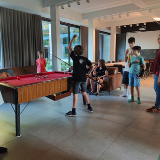 Ondertussen hadden de oudere groepen, nog volop tijd om te ontspannen. Ze genoten van hun eerste momenten op het kamp met gezellige spelletjes en een ontspannen sfeer. Er werd gelachen, gepraat en hier en daar werden al de eerste schaakpartijen gespeeld. Het belooft een fantastische week te worden op ons schaakkamp 2025!
